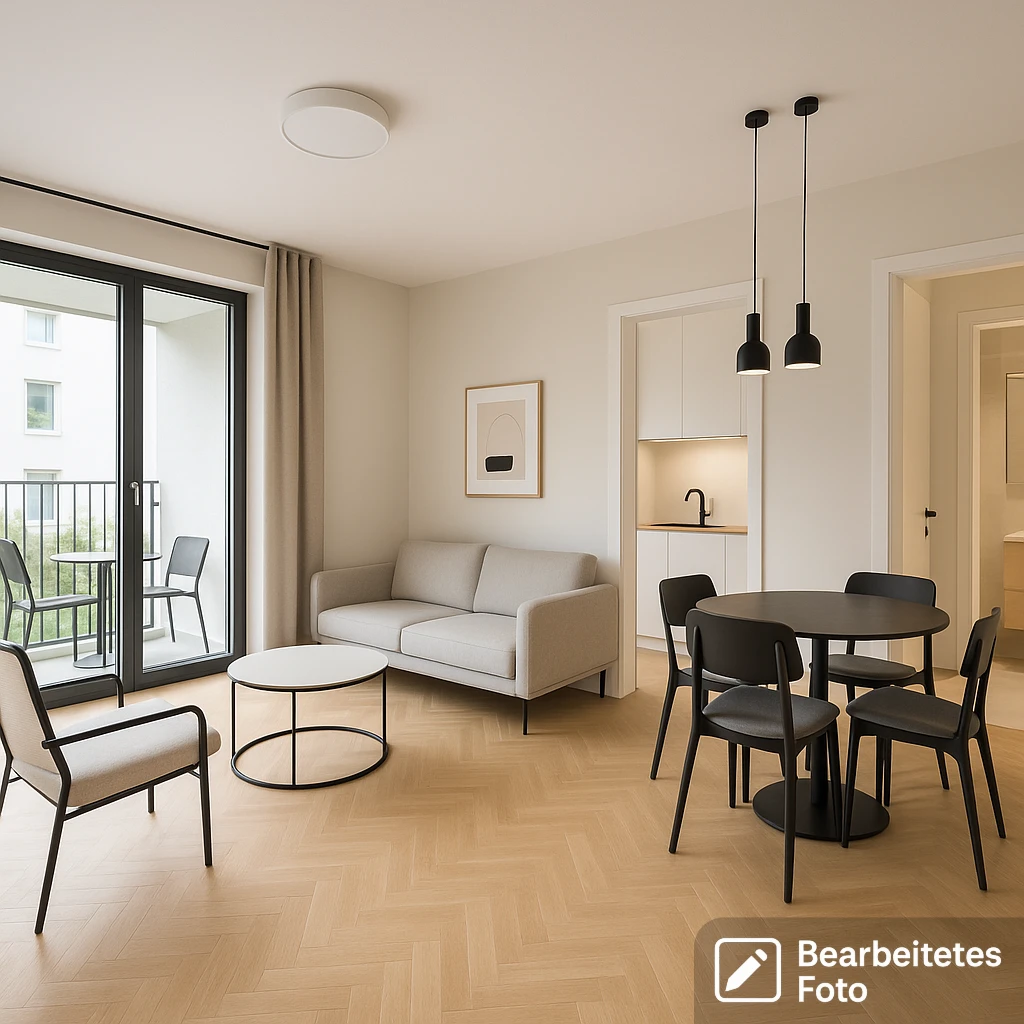 - Das erste Foto in unserer Galerie wurde leicht bearbeitet, um zu veranschaulichen, wie die Wohnung aussehen könnte – beispielsweise durch eine geänderte Wandfarbe. Die nachfolgenden Bilder zeigen den tatsächlichen Zustand der Immobilie.