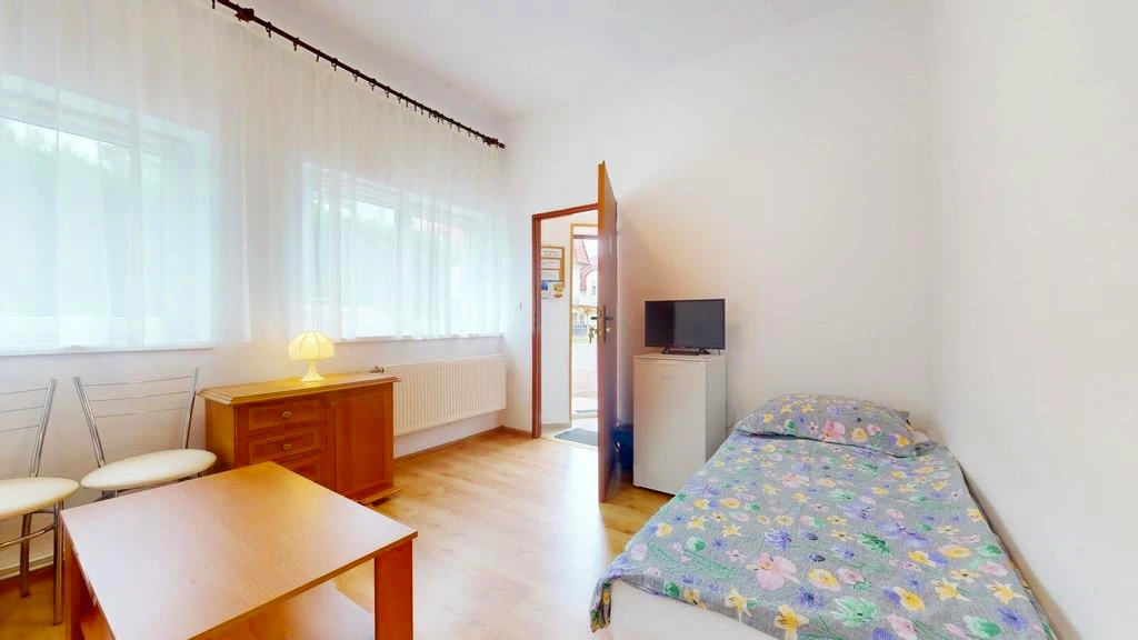 Das ebenerdige Haus eignet sich perfekt als Betreiberwohnung oder Rückzugsort für die Familie. Es umfasst: - Zwei Schlafzimmer - Homeoffice / Arbeitszimmer - Speisekammer - Küche - Badezimmer