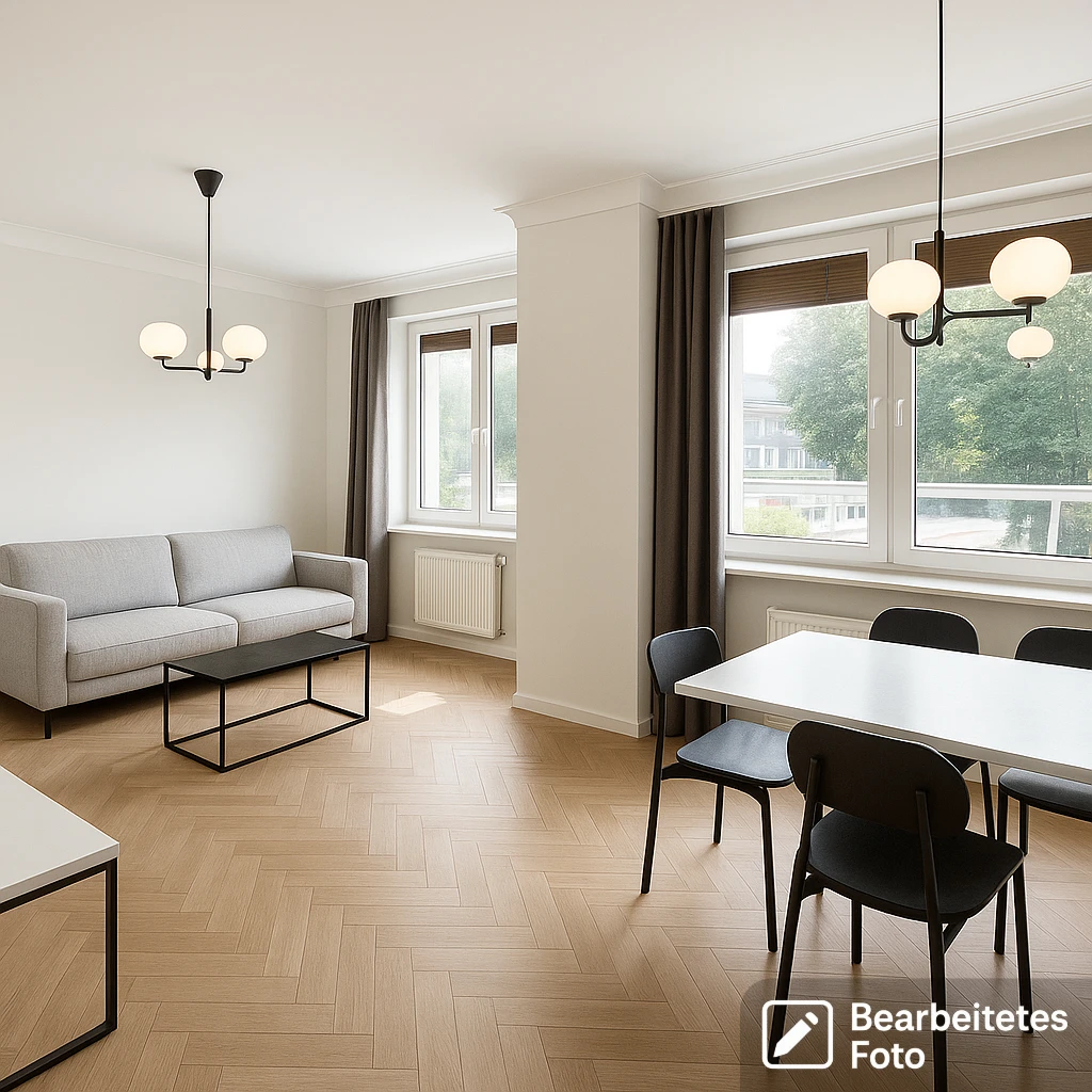 - Das erste Foto in unserer Galerie wurde leicht bearbeitet, um zu veranschaulichen, wie die Wohnung aussehen könnte – beispielsweise durch eine geänderte Wandfarbe. Die nachfolgenden Bilder zeigen den tatsächlichen Zustand der Immobilie.