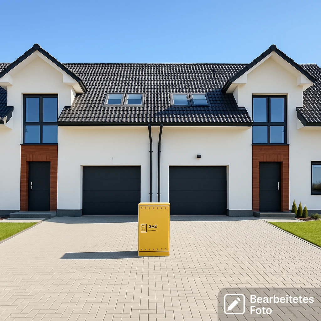 - Bauweise: Betonblock – massive Doppelwand mit Schall-/Wärmedämmung zwischen den Haushälften