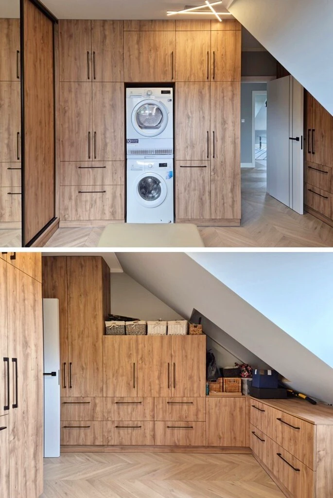 - Begehbarer Kleiderschrank mit Fenster, Waschmaschine und Trockner