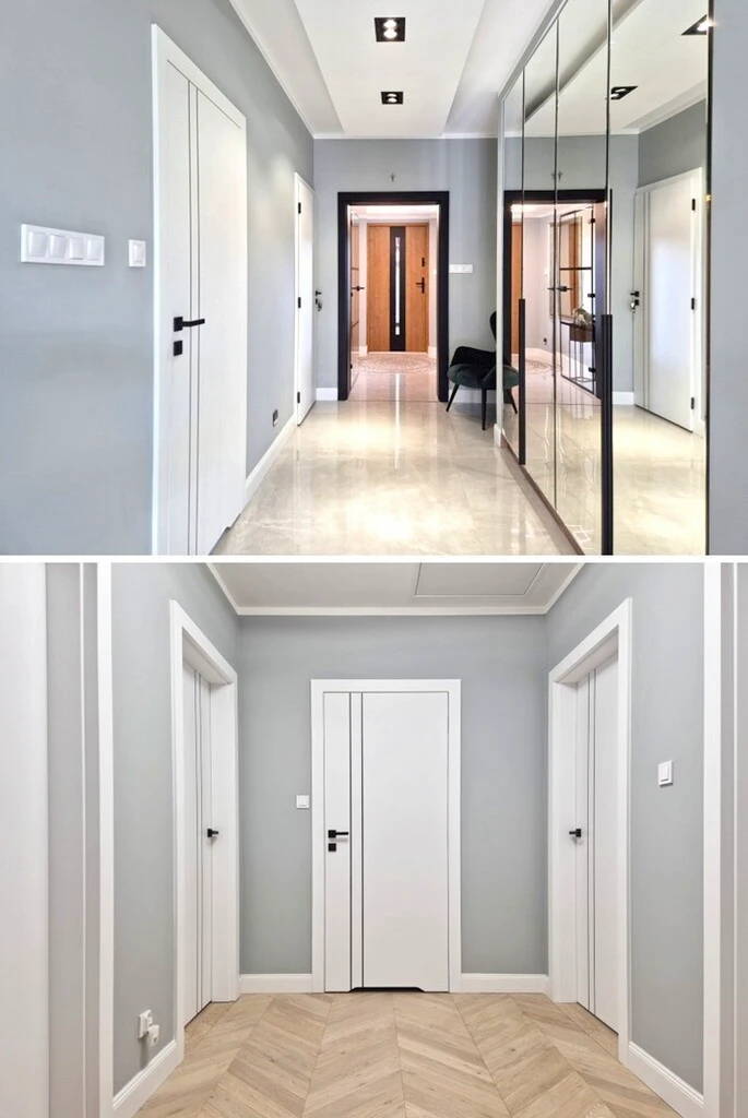 - Einladender Eingangsbereich mit hellem Windfang und Flur mit großer Spiegelschrank-Lösung