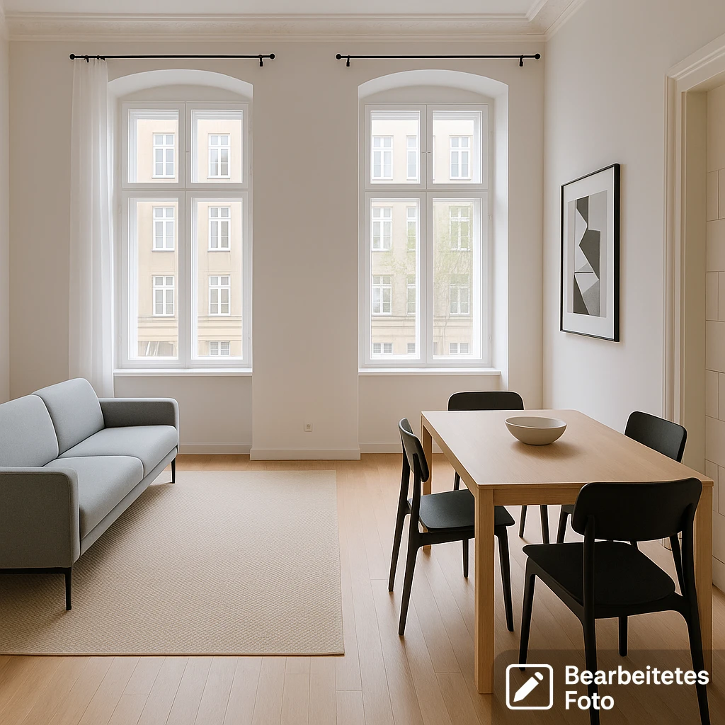 - Das erste Foto in unserer Galerie wurde leicht bearbeitet, um zu veranschaulichen, wie die Wohnung aussehen könnte – beispielsweise durch eine geänderte Wandfarbe. Die nachfolgenden Bilder zeigen den tatsächlichen Zustand der Immobilie.