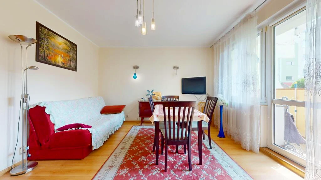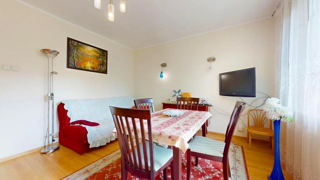 Diese gepflegte Wohnung befindet sich im beliebten Stadtteil Kijewo in einem vierstöckigen Wohnblock aus dem Jahr 1994. Das Gebäude sowie die Wohnung selbst befinden sich in einem sehr guten Zustand.