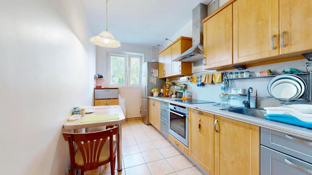 Die 63 m² große Wohnung besticht durch eine durchdachte Raumaufteilung und helle, freundliche Zimmer. Die Küche verfügt über ein Fenster, was für angenehmes Tageslicht sorgt. Ein Badezimmer ist vorhanden.
