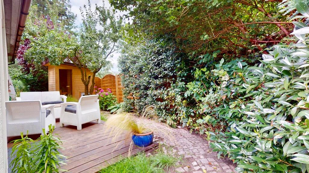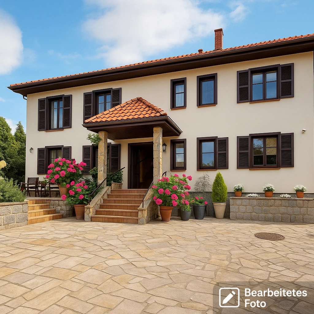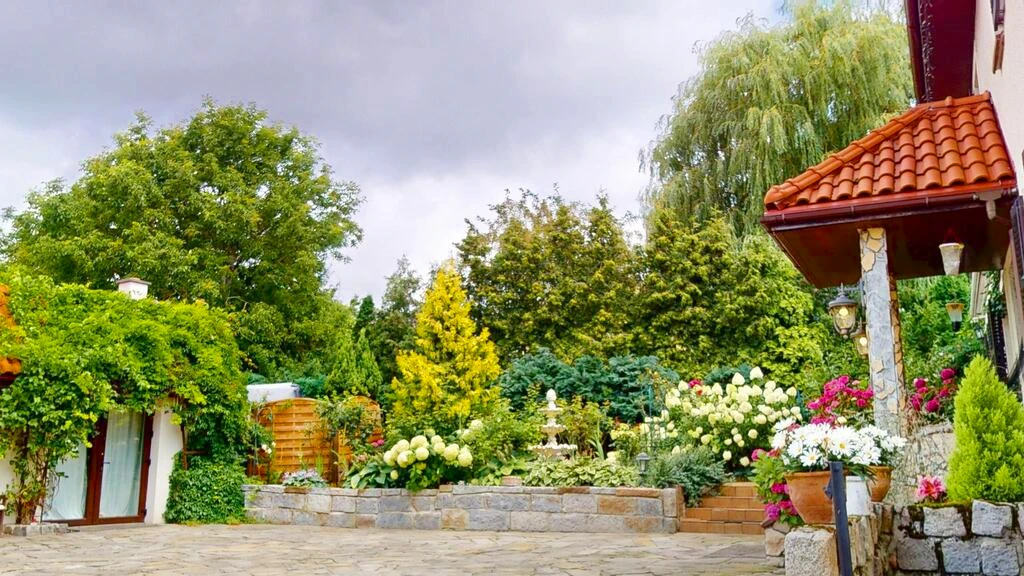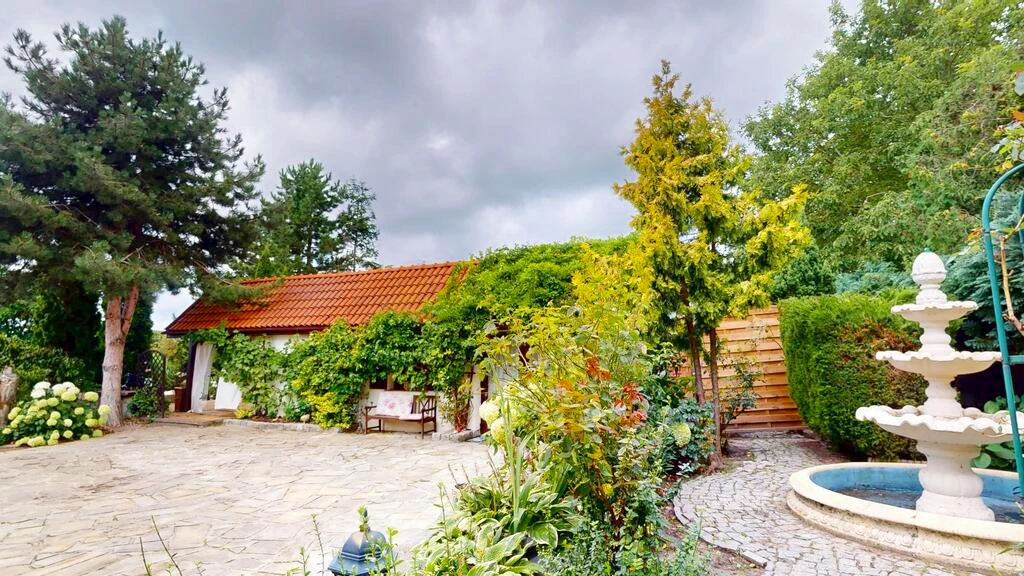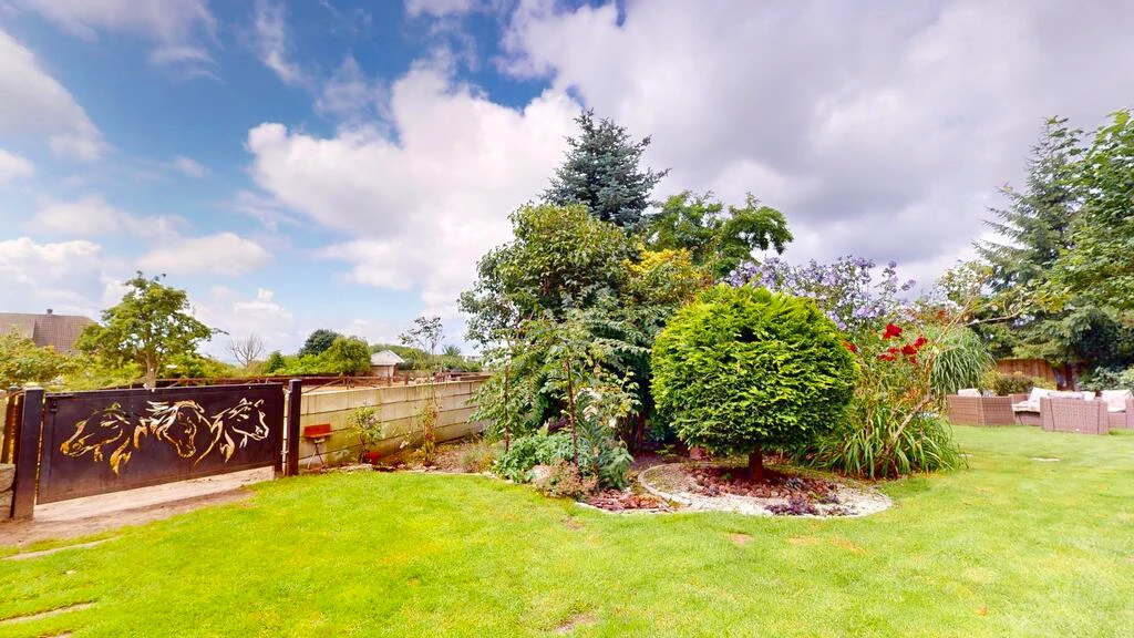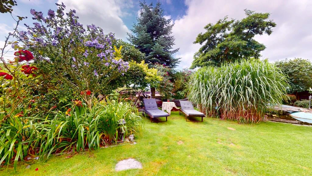 Das liebevoll angelegte Grundstück begeistert mit vielfältiger Bepflanzung, einem Zierteich, romantischen Gartenwegen sowie einem vollautomatisierten Bewässerungssystem. Ein echtes Highlight ist das separate Gästehaus mit Wohnbereich, Küche, zwei Schlafzimmern und Bad mit WC – perfekt für Familie, Freunde oder als Ferienunterkunft.