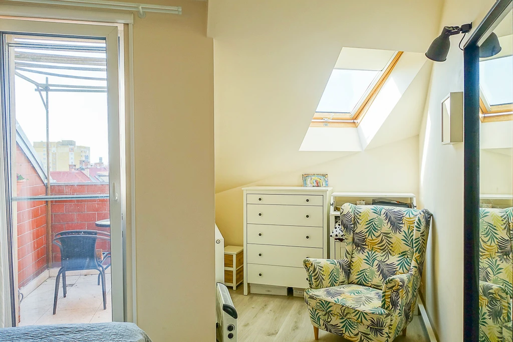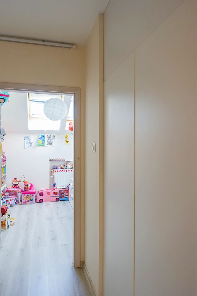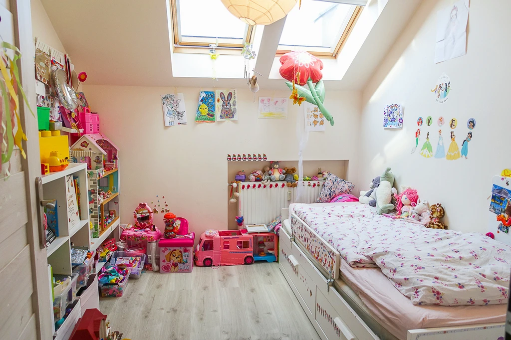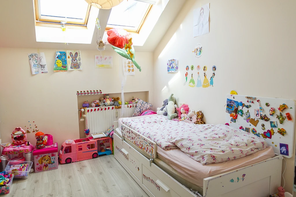 - Kinderzimmer: 9 m² mit Dachflächenfenstern.