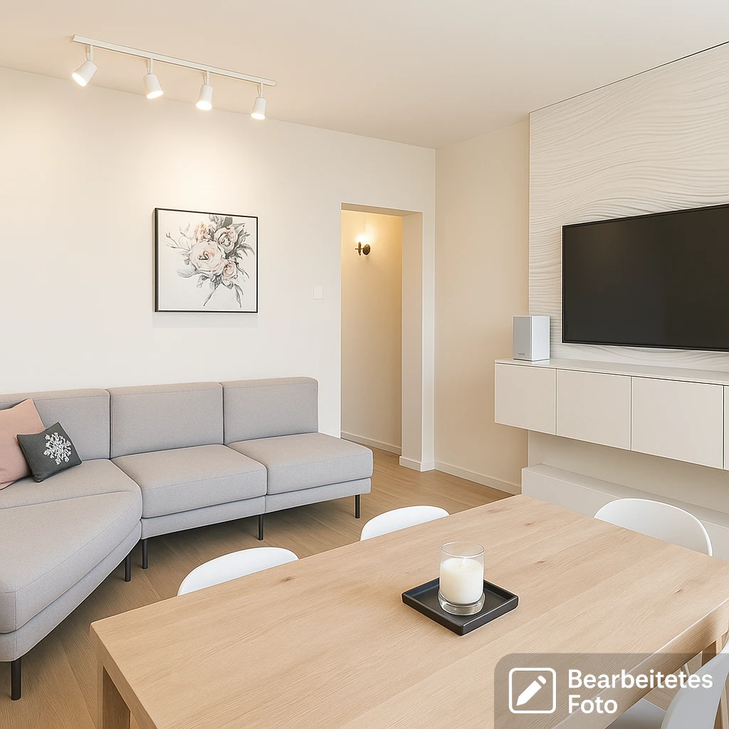 - Das erste Foto in unserer Galerie wurde leicht bearbeitet, um zu veranschaulichen, wie die Wohnung aussehen könnte – beispielsweise durch eine geänderte Wandfarbe. Die nachfolgenden Bilder zeigen den tatsächlichen Zustand der Immobilie.