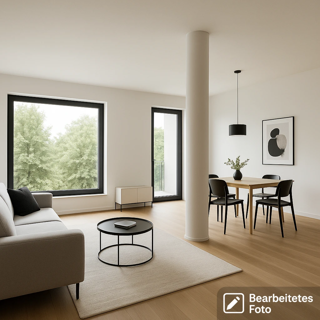 - Das erste Foto in unserer Galerie wurde leicht bearbeitet, um zu veranschaulichen, wie die Wohnung aussehen könnte – beispielsweise durch eine geänderte Wandfarbe. Die nachfolgenden Bilder zeigen den tatsächlichen Zustand der Immobilie.