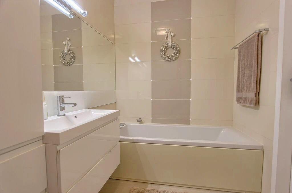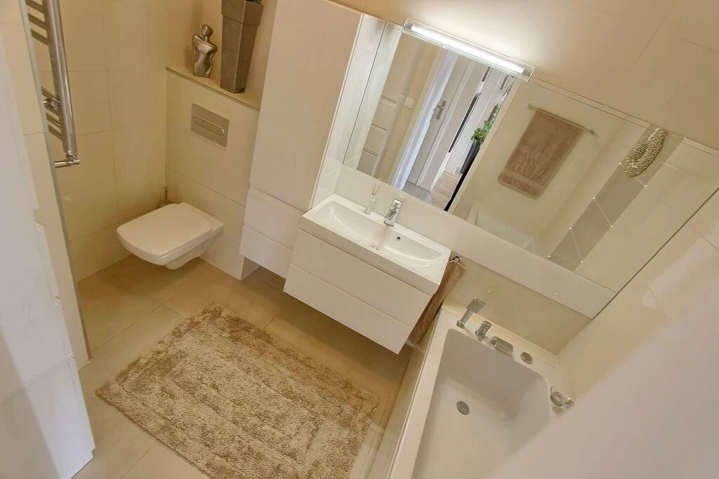 - Elegantes Badezimmer mit Badewanne
