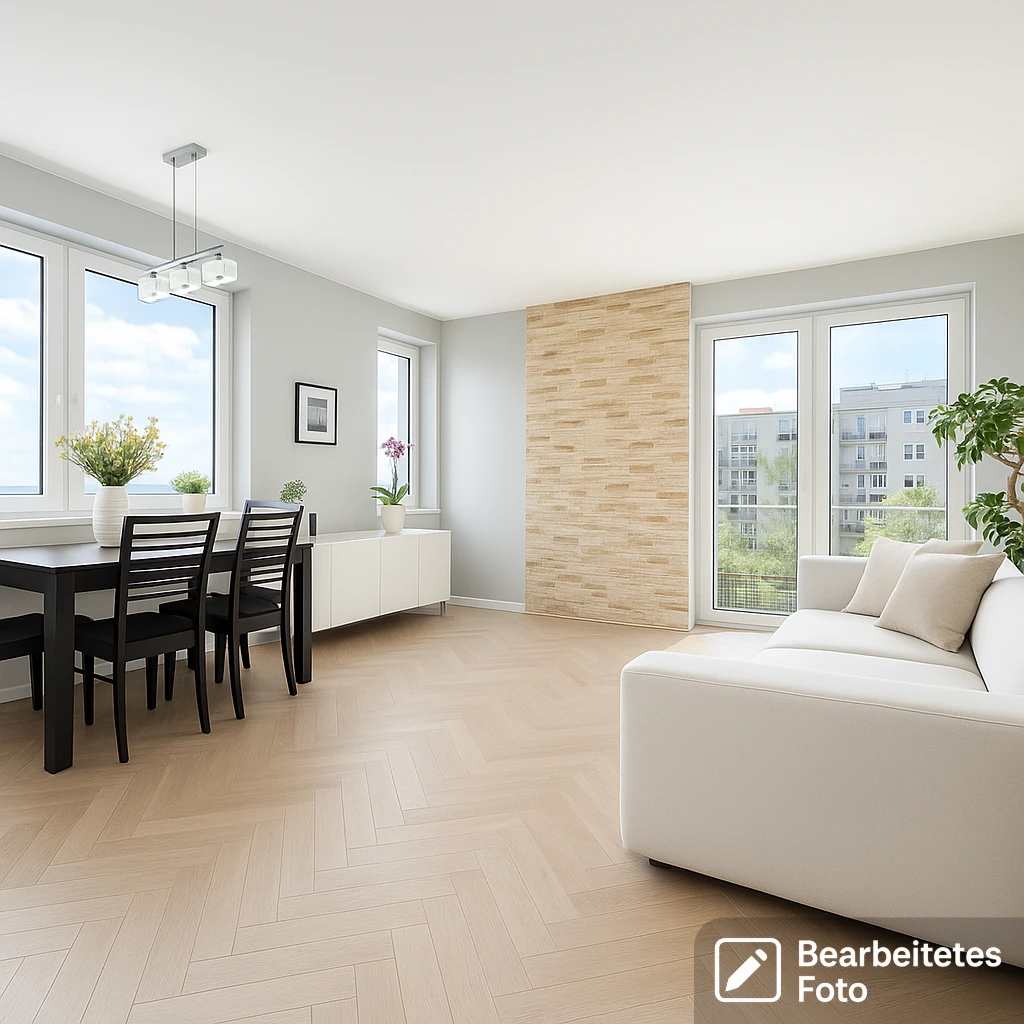 - Das erste Foto in unserer Galerie wurde leicht bearbeitet, um zu veranschaulichen, wie die Wohnung aussehen könnte – beispielsweise durch eine geänderte Wandfarbe. Die nachfolgenden Bilder zeigen den tatsächlichen Zustand der Immobilie.