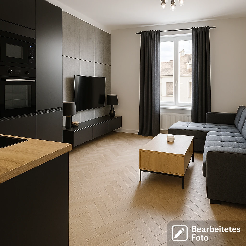- Das erste Foto in unserer Galerie wurde leicht bearbeitet, um zu veranschaulichen, wie die Wohnung aussehen könnte – beispielsweise durch eine geänderte Wandfarbe. Die nachfolgenden Bilder zeigen den tatsächlichen Zustand der Immobilie.