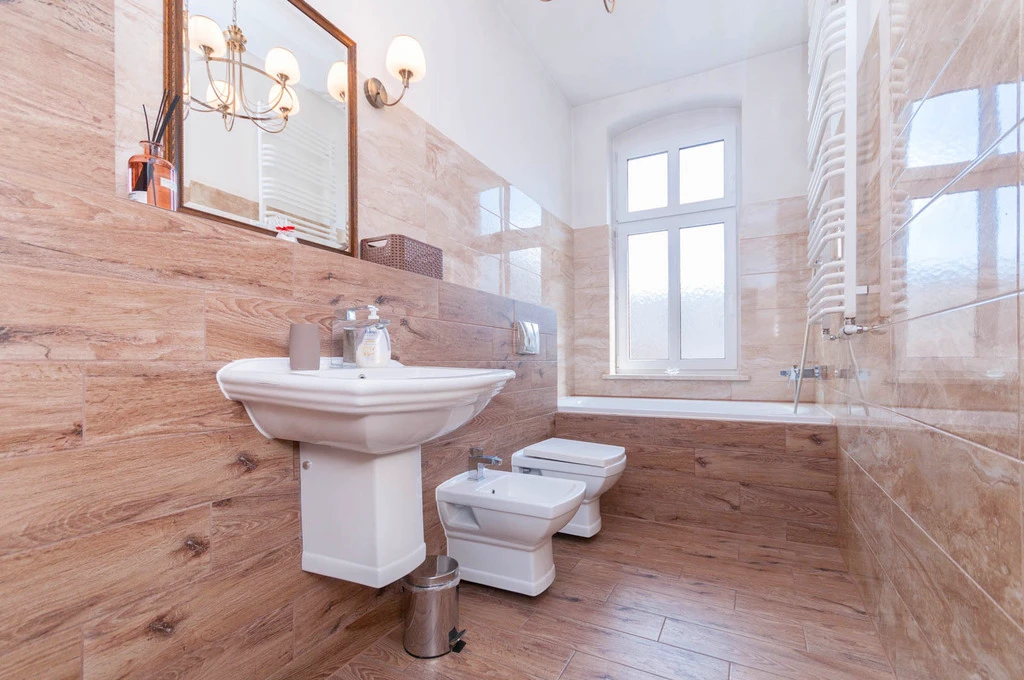 - Fußbodenbelag: hochwertige Feinsteinzeugfliesen
