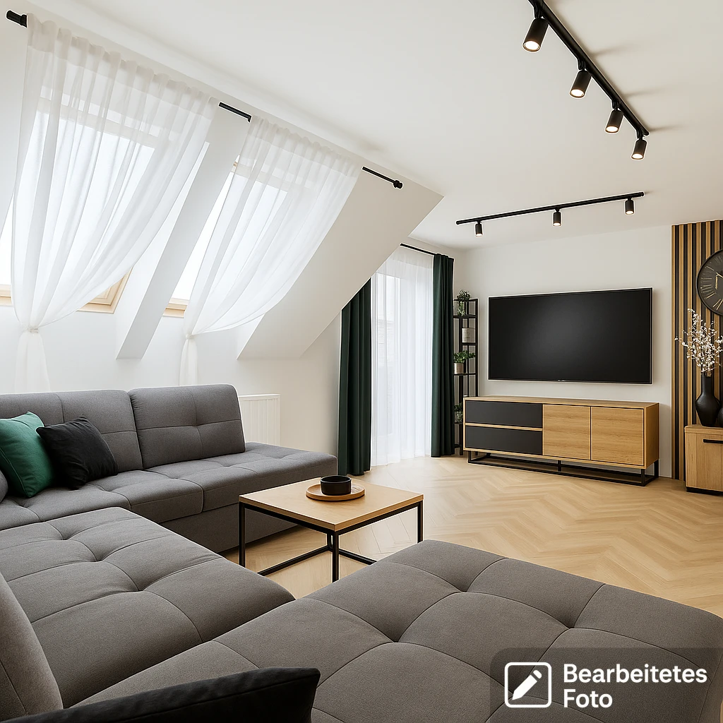 - Das erste Foto in unserer Galerie wurde leicht bearbeitet, um zu veranschaulichen, wie die Wohnung aussehen könnte – beispielsweise durch eine geänderte Wandfarbe. Die nachfolgenden Bilder zeigen den tatsächlichen Zustand der Immobilie.