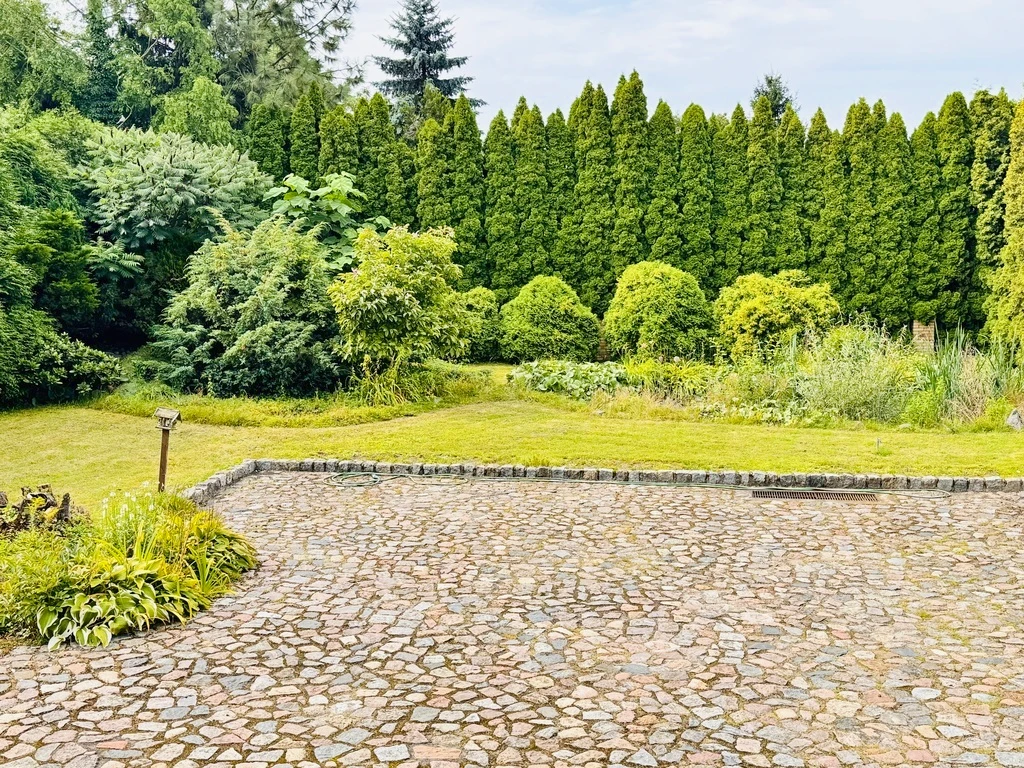 Das großzügige Grundstück mit etwa 1.134 m² ist rechteckig geschnitten und von hohen Bäumen umgeben – Privatsphäre ist garantiert. Die große Fläche bietet vielseitige Gestaltungsmöglichkeiten: ein gepflegter Garten, ein Gemüsebeet oder sogar der Bau eines weiteren Gebäudes (bis zu 40 % Bebauung möglich).
