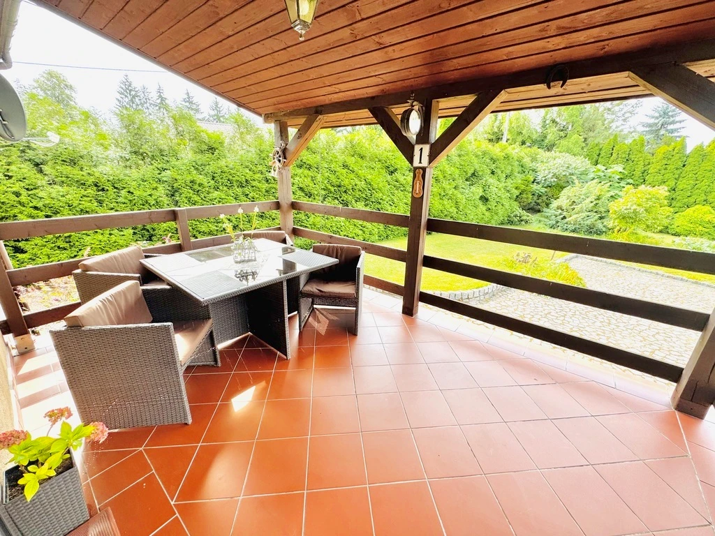 - Zwei Terrassen (ca. 35 m² + 14 m² überdacht)