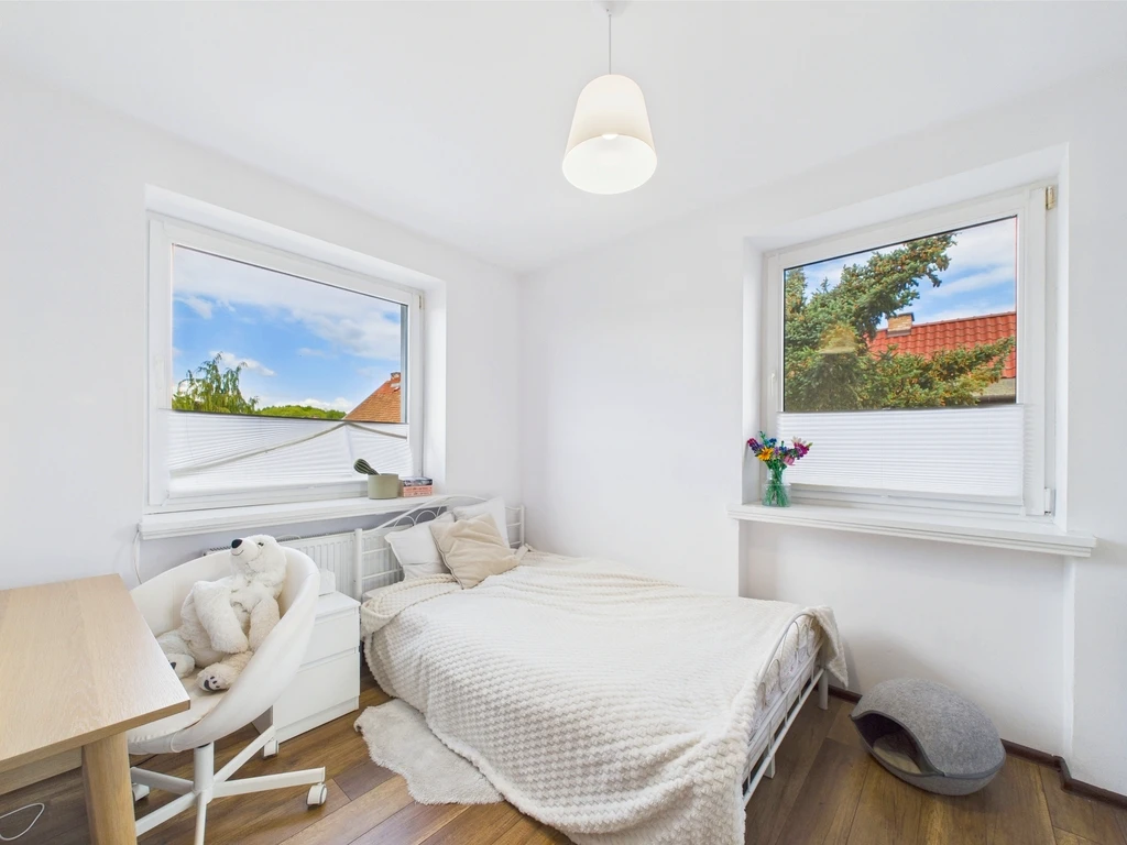 Willkommen in Ihrem neuen Zuhause! Dieses gepflegte Reihenendhaus mit einer Wohnfläche von 107,90 m² (Gesamtfläche: 215,30 m²) befindet sich im grünen Stadtteil Dąbie in Szczecin, nur 600 m vom idyllischen Jezioro Dąbie entfernt. Die ruhige Lage kombiniert Naturnähe mit hervorragender Anbindung an das Stadtzentrum.