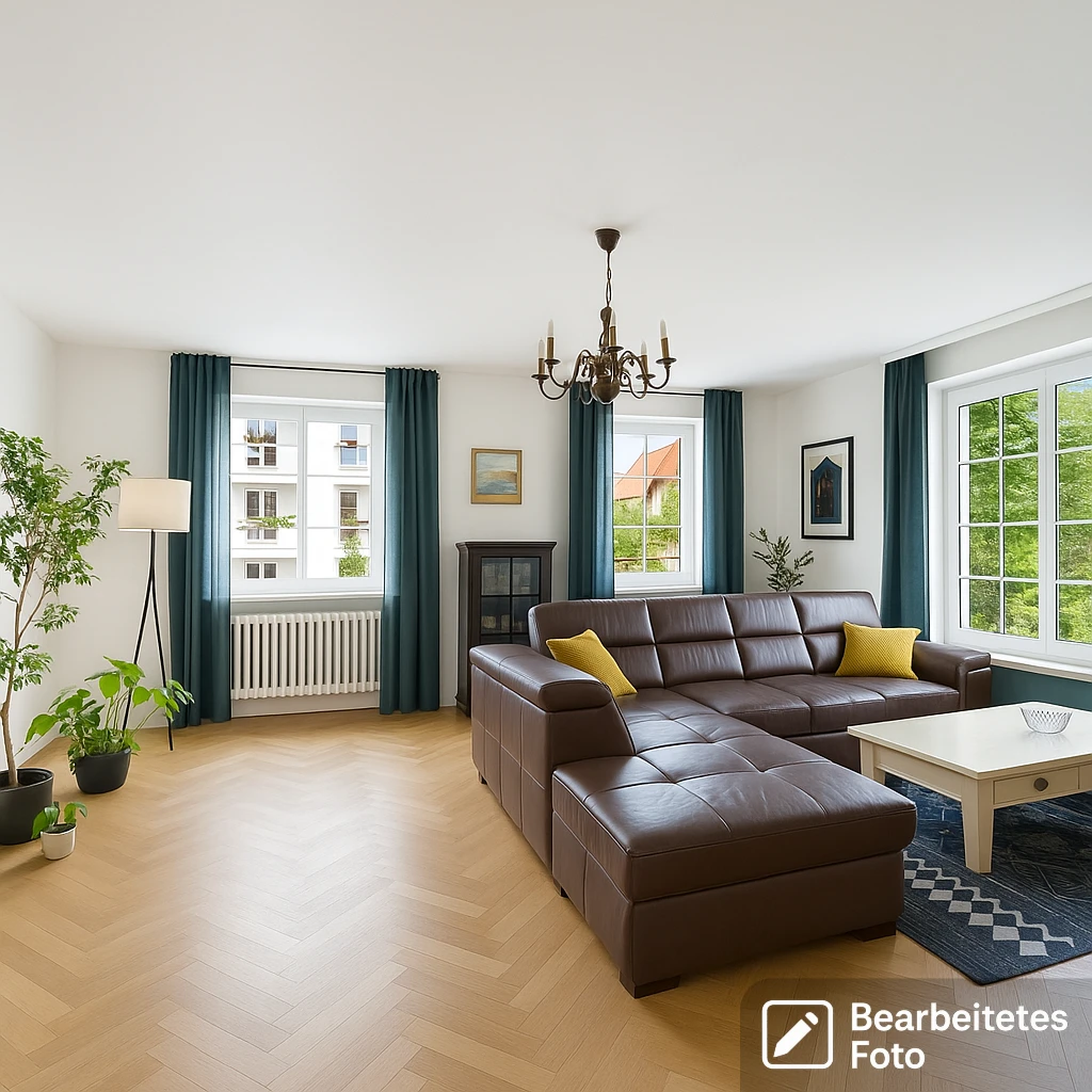 - Das erste Foto in unserer Galerie wurde leicht bearbeitet, um zu veranschaulichen, wie die Wohnung aussehen könnte – beispielsweise durch eine geänderte Wandfarbe. Die nachfolgenden Bilder zeigen den tatsächlichen Zustand der Immobilie.