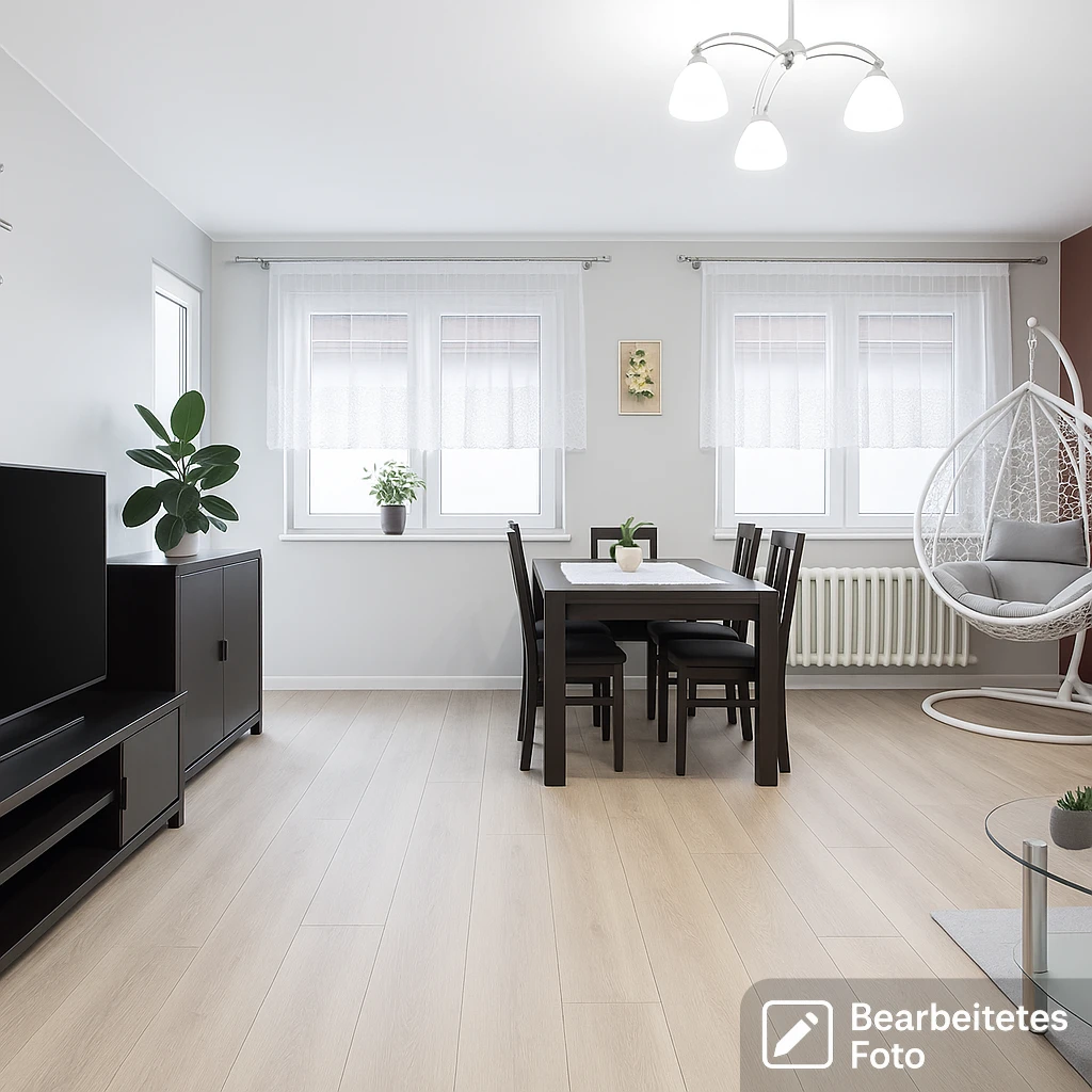 - Das erste Foto in unserer Galerie wurde leicht bearbeitet, um zu veranschaulichen, wie die Wohnung aussehen könnte – beispielsweise durch eine geänderte Wandfarbe. Die nachfolgenden Bilder zeigen den tatsächlichen Zustand der Immobilie.