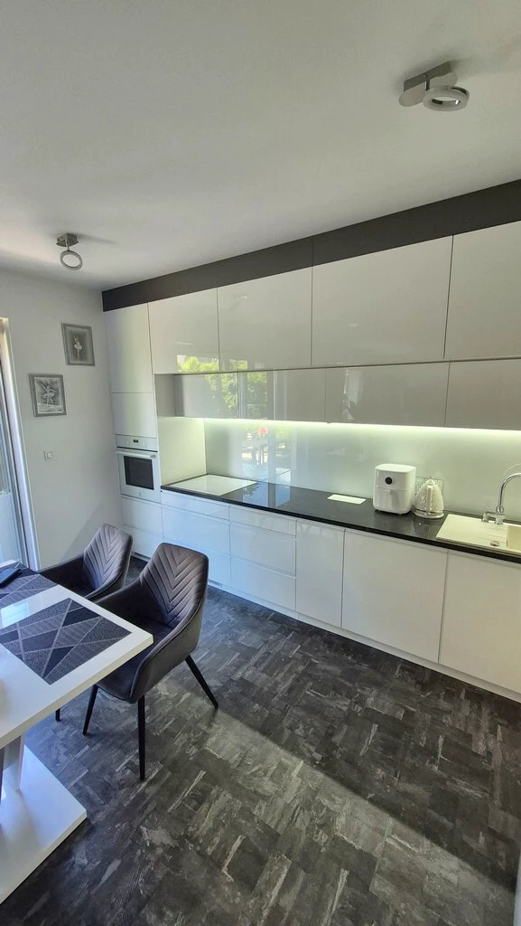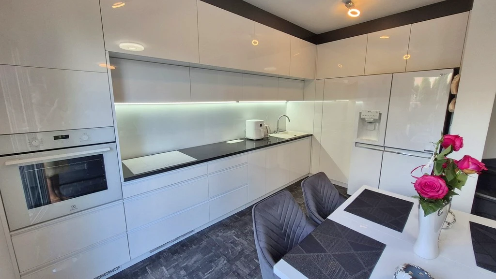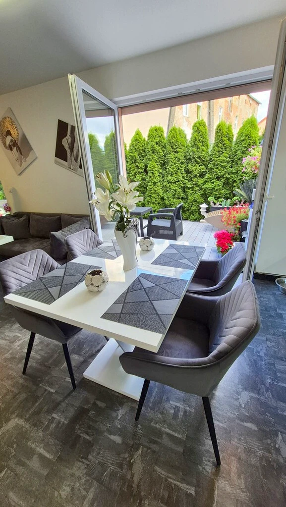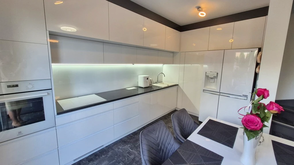Willkommen in diesem stilvollen, modernen Zuhause in Szczecin-Gumieńce! Dieses außergewöhnliche, zweistöckige Apartment befindet sich in einer ruhigen und geschlossenen Wohnanlage mit niedrigen Backsteingebäuden aus dem Jahr 2020 im Reihenhausstil – jedes mit nur zwei Wohneinheiten. Die durchdachte Gestaltung und hochwertige Ausstattung sorgen für ein hohes Maß an Komfort und Privatsphäre.