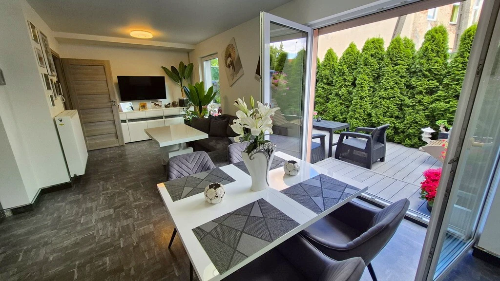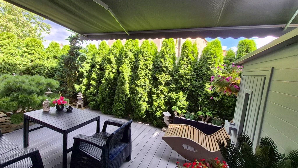Stettin: Modernes Garten-Maisonette mit Terrasse, Garage, Sauna und Top-Ausstattung