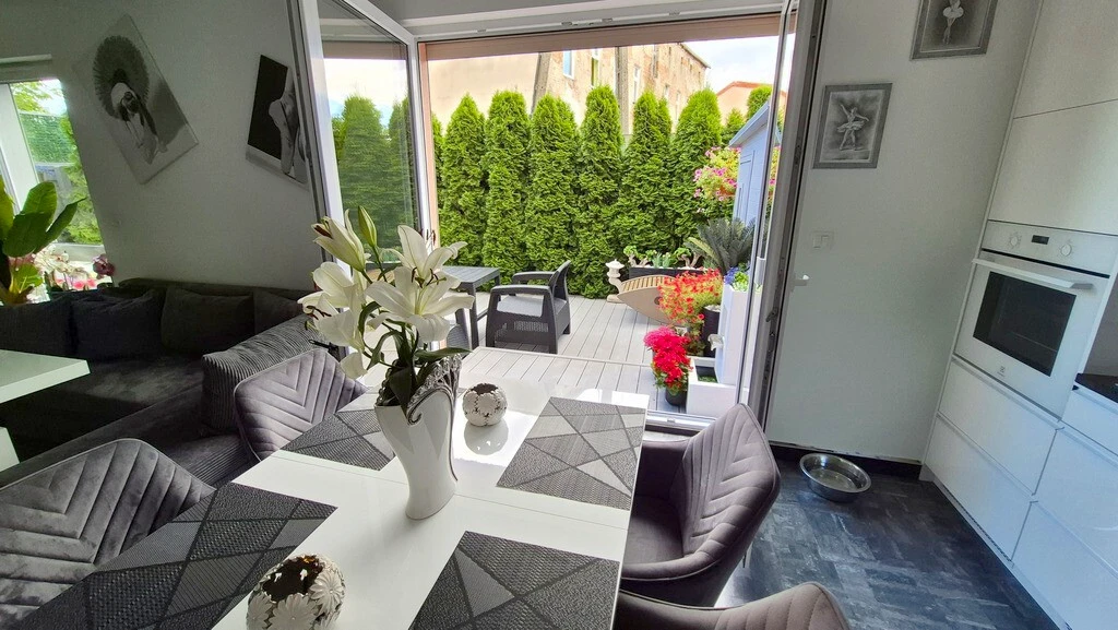 Charmantes Maisonette-Apartment mit Garten, Garage und Sauna in Szczecin-Gumieńce