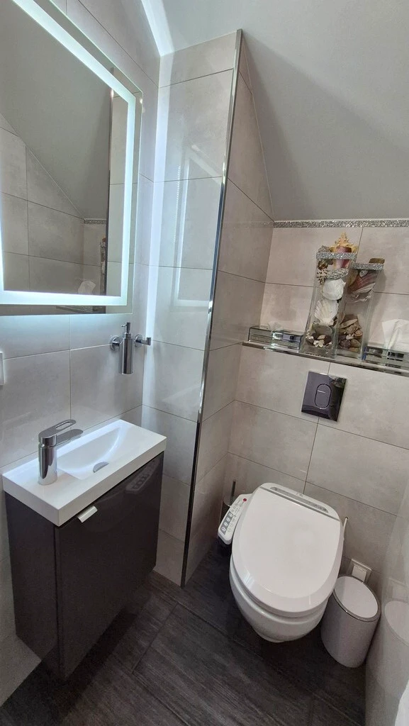 Die gesamte Wohnfläche beträgt 70,31 m², hinzu kommt eine geräumige Garage mit 15,38 m² – gemeinsam also 85,69 m². Das Apartment hat einen separaten Eingang im Erdgeschoss mit einbruchhemmender Tür. Ein einladender Eingangsbereich mit praktischem Einbauschrank und Gäste-WC empfängt Sie sofort mit Funktionalität und Stil.