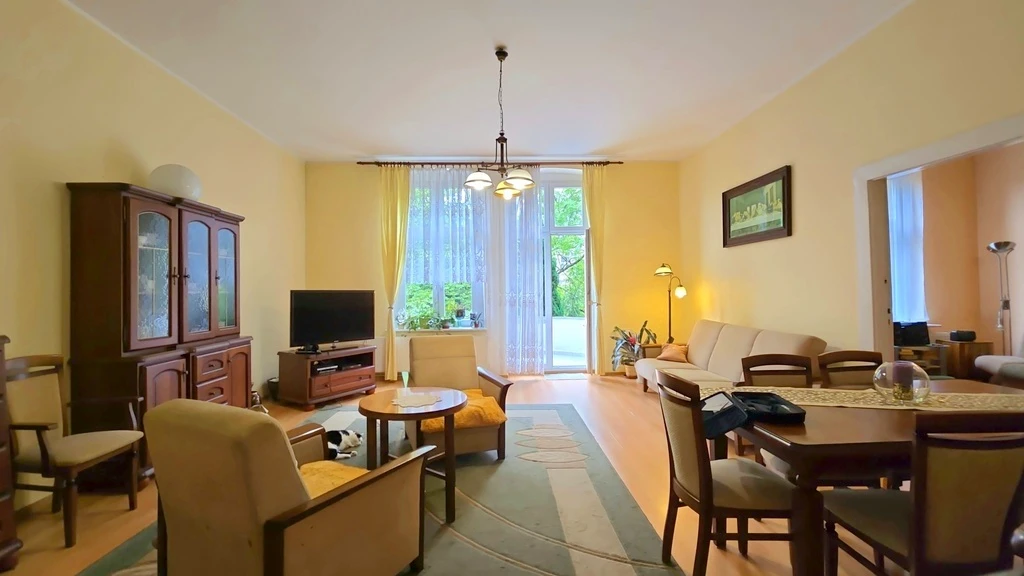 Die Wohnung mit einer Fläche von 166,72 m² erstreckt sich über das gesamte erste Obergeschoss dieser stilvollen Altbauvilla aus dem Jahr 1920. Umgeben von majestätischen Villen aus dem späten 19. Jahrhundert und eingebettet in viel Grün, bietet dieses Domizil sowohl Privatsphäre als auch ausgezeichnete Infrastruktur in direkter Umgebung – ideal für Liebhaber klassischer Architektur.