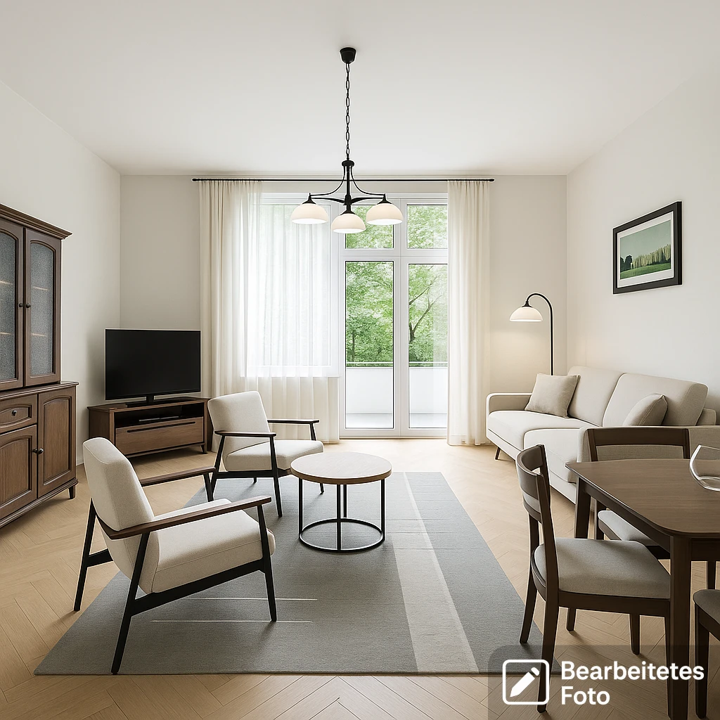 - Das erste Foto in unserer Galerie wurde leicht bearbeitet, um zu veranschaulichen, wie die Wohnung aussehen könnte – beispielsweise durch eine geänderte Wandfarbe. Die nachfolgenden Bilder zeigen den tatsächlichen Zustand der Immobilie.
