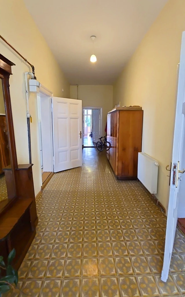 Die original erhaltene, massive Holzinnentüren zeugen von hoher Qualität und Charme der damaligen Baukunst. Unter Linoleum und Fliesen bestehen Möglichkeiten, die ursprünglichen Holzdielen wieder freizulegen – perfekt für Altbau-Liebhaber.