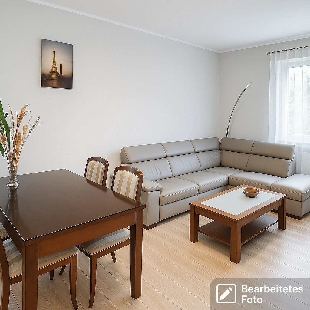 - Das erste Foto in unserer Galerie wurde leicht bearbeitet, um zu veranschaulichen, wie die Wohnung aussehen könnte – beispielsweise durch eine geänderte Wandfarbe. Die nachfolgenden Bilder zeigen den tatsächlichen Zustand der Immobilie.