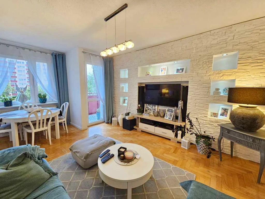 Willkommen in Ihrem neuen Zuhause – diese charmante 3-Zimmer-Wohnung mit einer Fläche von 67,79 m² befindet sich im 4. Obergeschoss eines gepflegten 4-stöckigen Wohnhauses aus dem Jahr 1989. Ruhig gelegen im beliebten Stadtteil Książąt Pomorskich auf der linken Oderseite von Stettin, genießen Sie hier ein angenehmes Wohnumfeld mit viel Grün und hervorragender Infrastruktur.