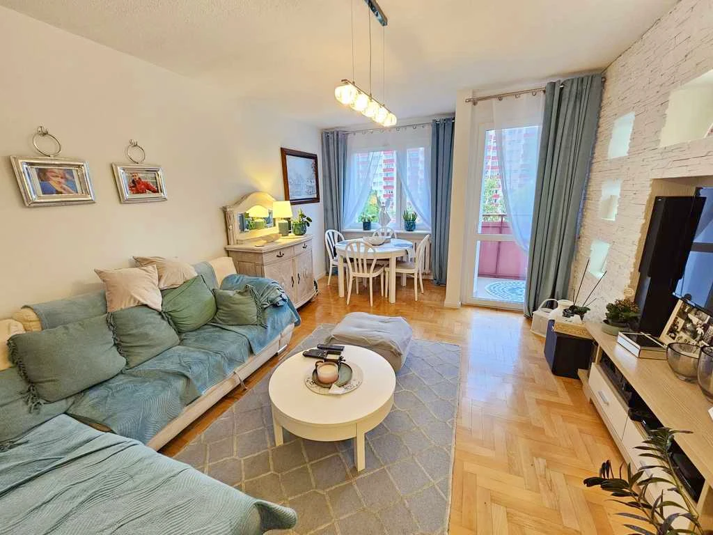 Eine funktional geschnittene Wohnung in gepflegtem Zustand, gelegen in einem vierstöckigen Wohnblock im beliebten Stadtteil Książąt Pomorskich. Die Wohnung verfügt über eine helle Küche mit Fenster, ein Badezimmer mit Badewanne und Waschmaschine sowie einen Balkon mit ca. 4 m² Fläche. Praktischer Stauraum steht im zugeordneten Kellerraum zur Verfügung.