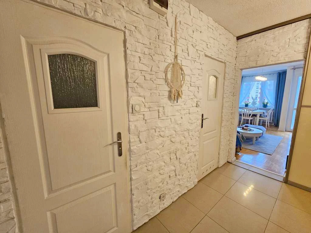 In den Wohnräumen sorgt ein frisch abgeschliffener Parkettboden für behagliches Wohngefühl, während eine stilvolle Ziegelwand einen modernen Akzent setzt. Die Fenster wurden vor zwei Jahren durch hochwertige, dreifach verglaste PVC-Fenster ersetzt und befinden sich in ausgezeichnetem Zustand. Wände sind glatt verputzt und in sanften Pastellfarben gestrichen – einladend und wohnbereit.