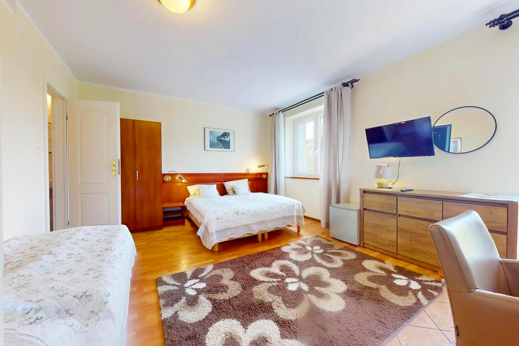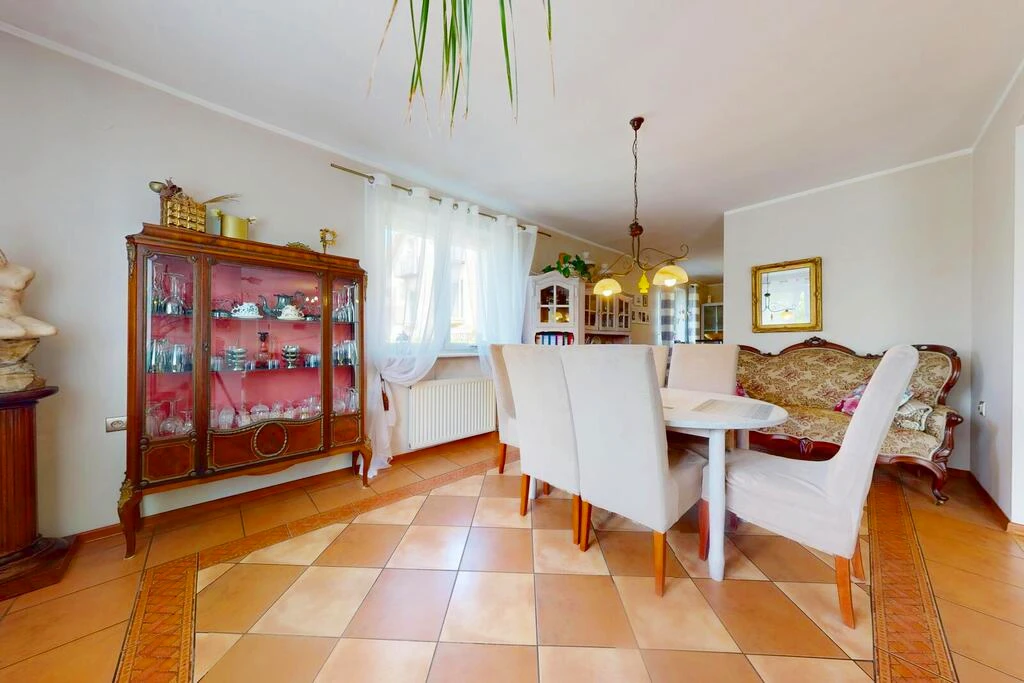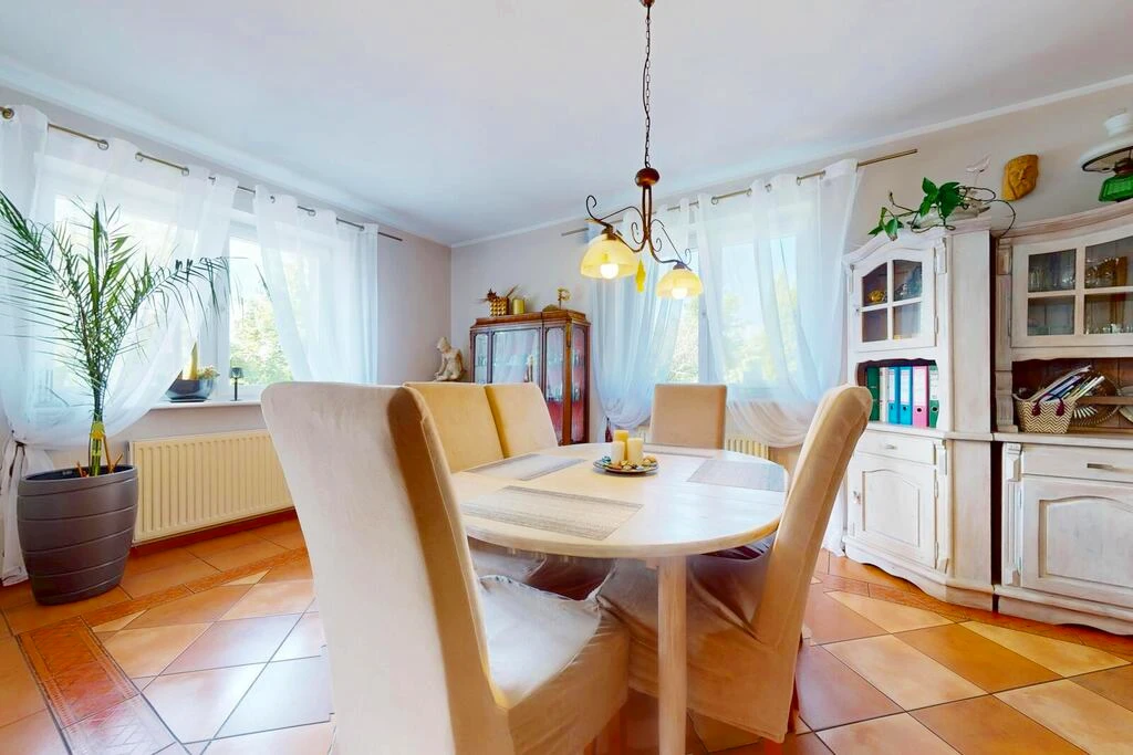 Willkommen in dieser außergewöhnlichen Immobilie mit idealer Lage in der malerischen Küstenstadt Rewal. Auf einem großzügigen Grundstück von 1.111 m² befindet sich ein freistehendes Gebäude mit einer Gesamtfläche von 450 m², das derzeit als erfolgreich geführter Pensionbetrieb genutzt wird – inklusive einer exklusiven Eigentümerwohnung mit separatem Eingang.