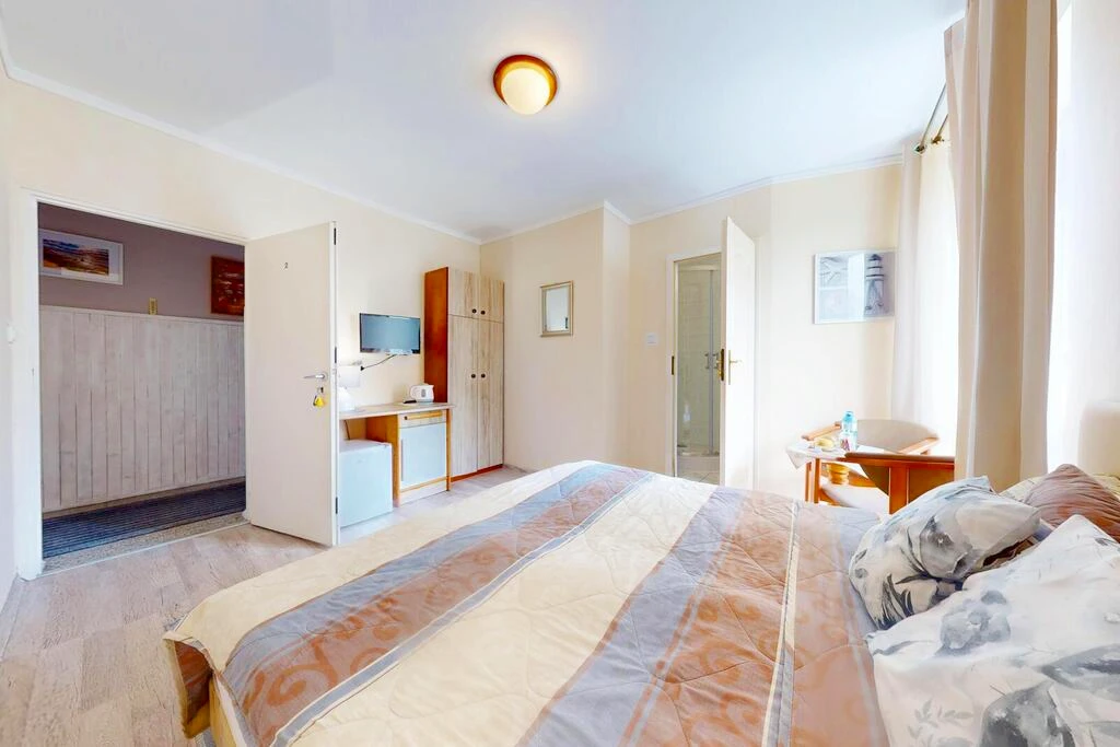 Der Pensionsteil umfasst zahlreiche Gästezimmer mit insgesamt 12 modernen Badezimmern. Die Räume befinden sich in einem idealen Zustand, bieten einen hohen Standard und sind vollständig ausgestattet – bereit für einen sofortigen Fortbetrieb.