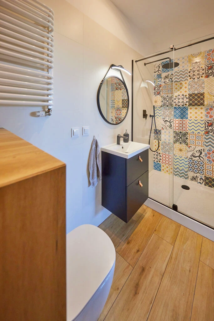 - Zusätzlich Wandheizkörper in den Bädern