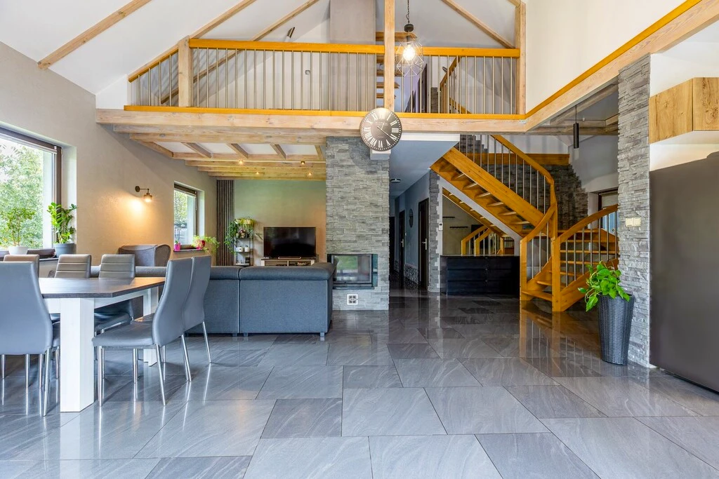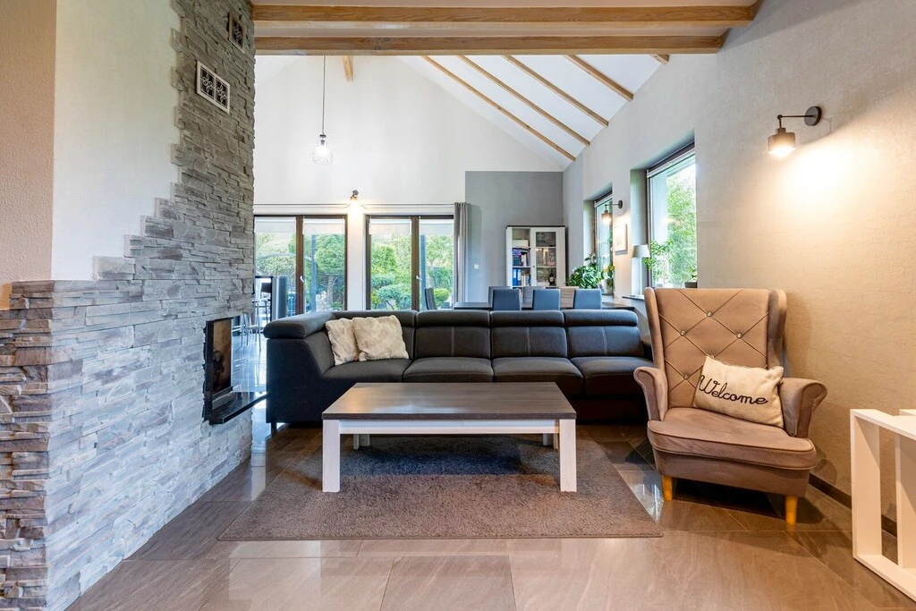 Erdgeschoss: - Großzügiger Wohnbereich mit Kamin, offenem Essbereich und Küche – 74,76 m² - Schlafzimmer – 10,83 m² - Begehbarer Kleiderschrank – 10,27 m² - Hauswirtschaftsraum/Waschküche – 8,79 m² - Badezimmer – 11,5 m² - Heizungsraum – 2,5 m²