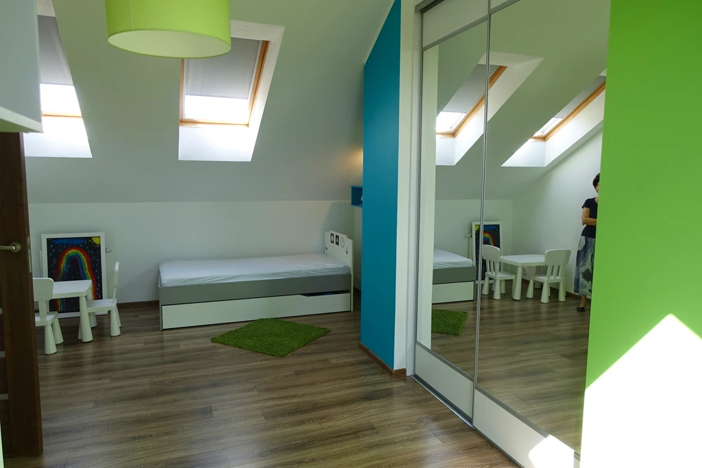 - Wohn-/Schlafzimmerflächen: 25 m² + 20 m² + 20 m² + 20 m² + 18 m²