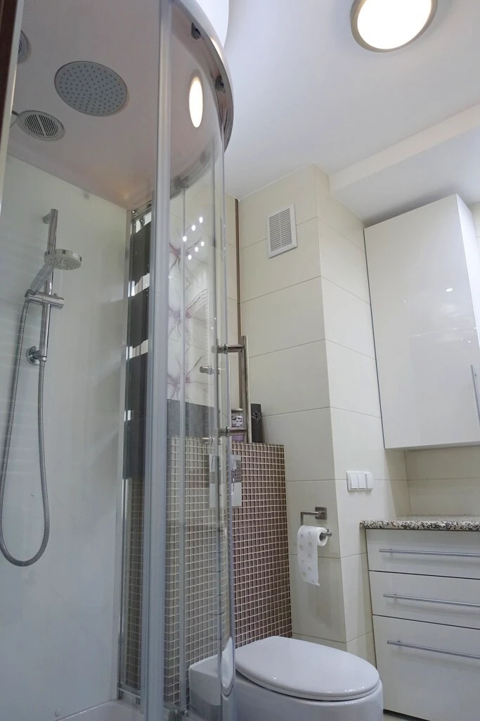 - Badezimmerausstattung: Dusche, Waschbecken, WC, Badewanne, Waschmaschine
