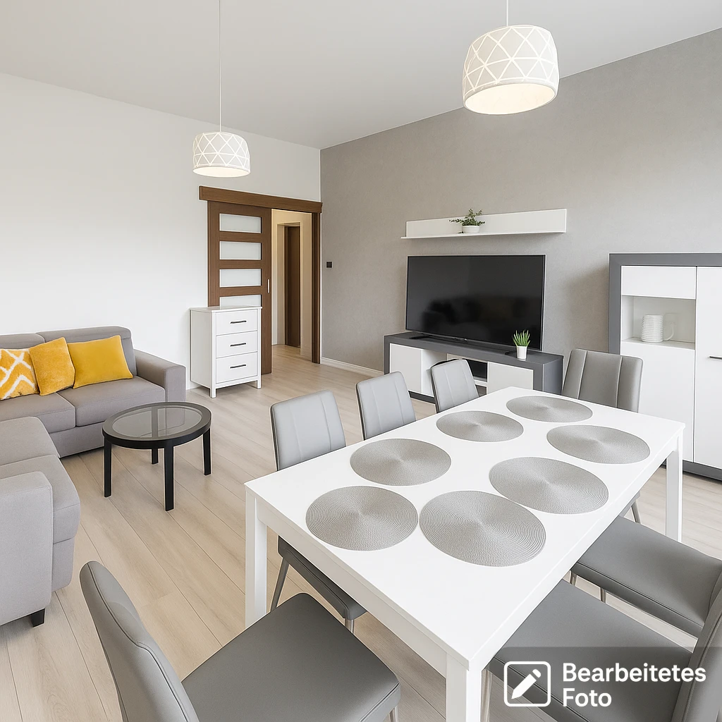 - Das erste Foto in unserer Galerie wurde leicht bearbeitet, um zu veranschaulichen, wie die Wohnung aussehen könnte – beispielsweise durch eine geänderte Wandfarbe. Die nachfolgenden Bilder zeigen den tatsächlichen Zustand der Immobilie.