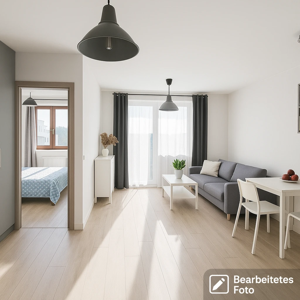 - Das erste Foto in unserer Galerie wurde leicht bearbeitet, um zu veranschaulichen, wie die Wohnung aussehen könnte – beispielsweise durch eine geänderte Wandfarbe. Die nachfolgenden Bilder zeigen den tatsächlichen Zustand der Immobilie.