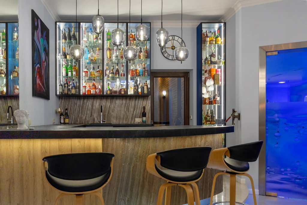 - eine Bar und eine gemütliche Kamin-Ecke mit Spatherm-Kamin (120 cm Breite).