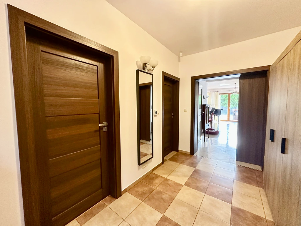 Willkommen in Ihrem neuen Zuhause! Dieses großzügige und hochwertig ausgestattete freistehende Einfamilienhaus mit einer Nutzfläche von 250,9 m² (inkl. Garage) befindet sich auf einem schönen, rechteckigen Grundstück von 714 m². Gelegen in einer ruhigen und grünen Wohngegend in der beliebten Ortschaft Kościno, Gemeinde Dobra – ideal für alle, die Naturverbundenheit mit Stadtnähe verbinden möchten.