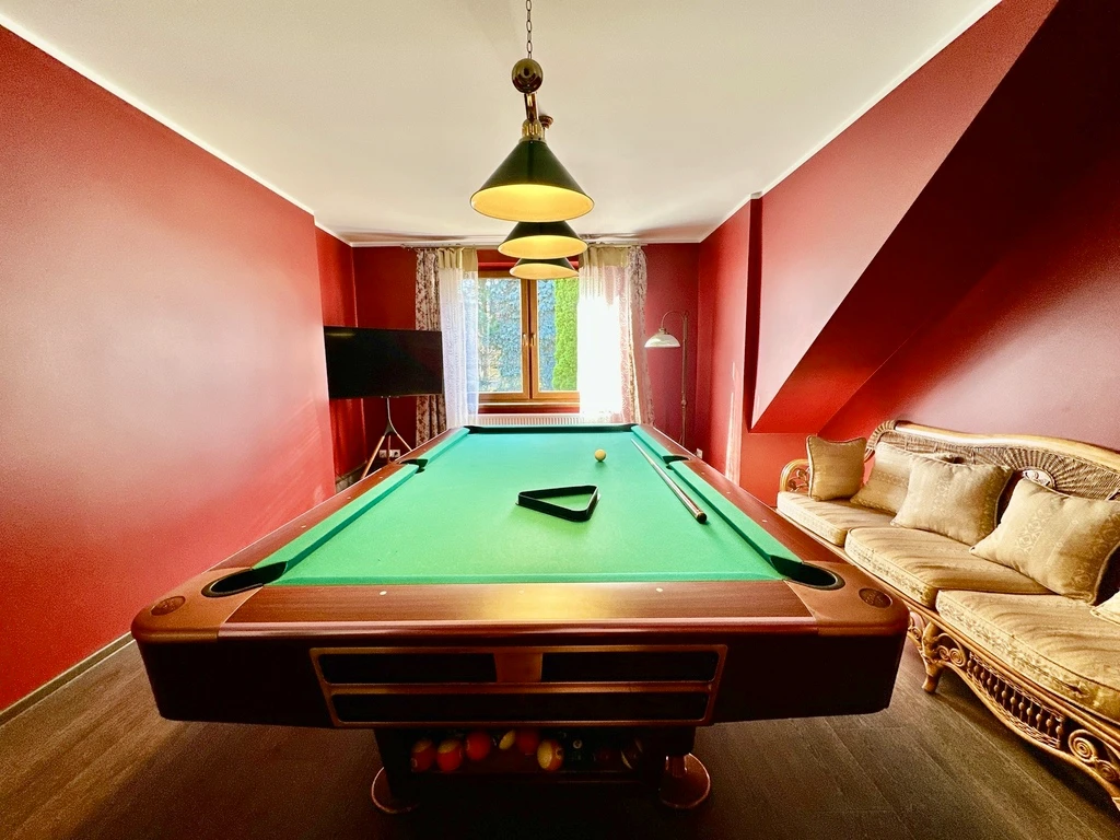 Obergeschoss: - Drei komfortable Schlafzimmer – jeweils mit privatem Bad - Billardzimmer - Überdachter Loggia-Balkon