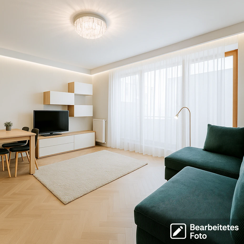 - Das erste Foto in unserer Galerie wurde leicht bearbeitet, um zu veranschaulichen, wie die Wohnung aussehen könnte – beispielsweise durch eine geänderte Wandfarbe. Die nachfolgenden Bilder zeigen den tatsächlichen Zustand der Immobilie.