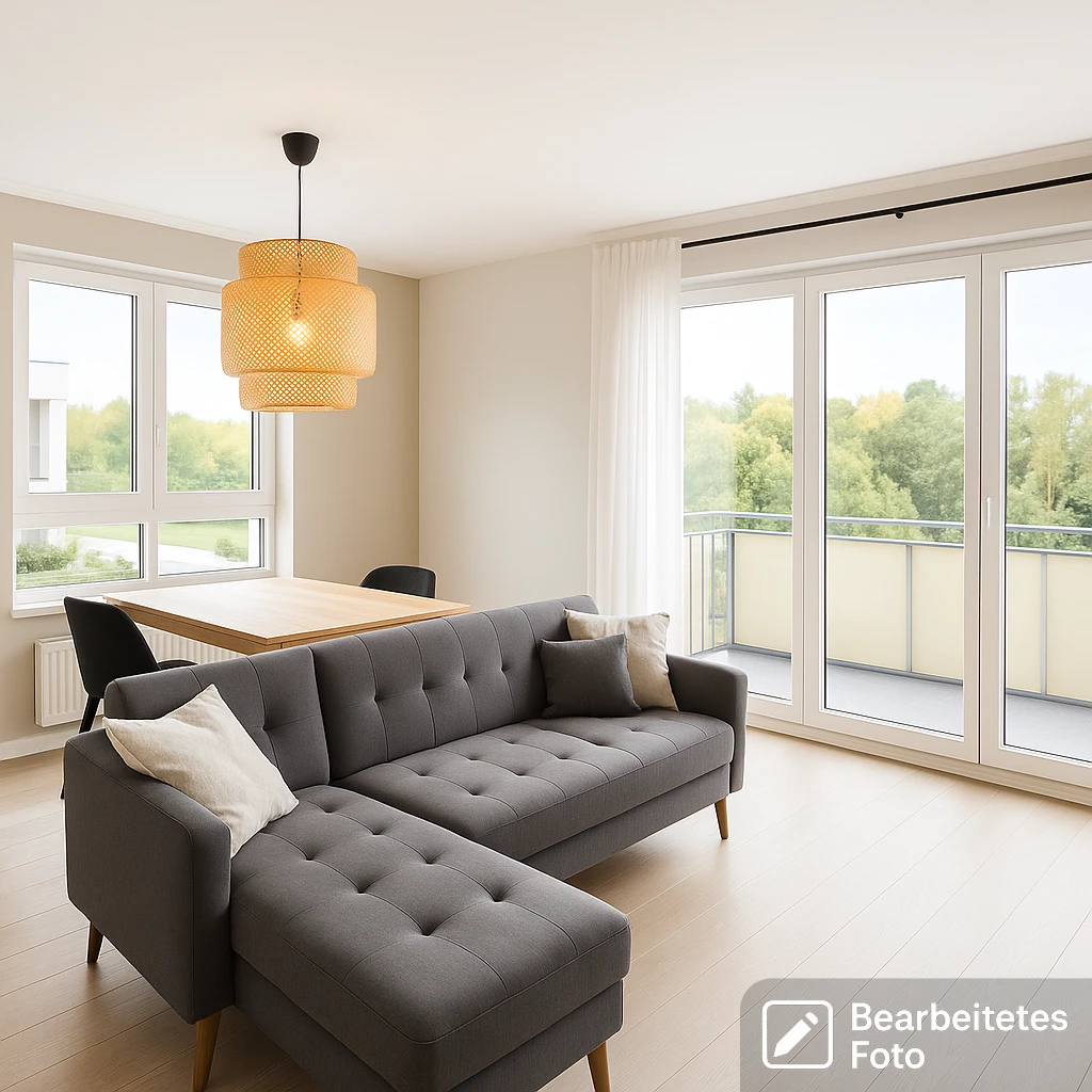 - Das erste Foto in unserer Galerie wurde leicht bearbeitet, um zu veranschaulichen, wie die Wohnung aussehen könnte – beispielsweise durch eine geänderte Wandfarbe. Die nachfolgenden Bilder zeigen den tatsächlichen Zustand der Immobilie.