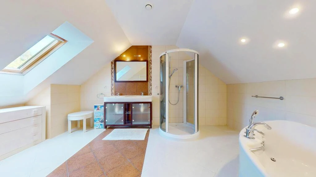 - Großes Badezimmer mit Badewanne und Dusche