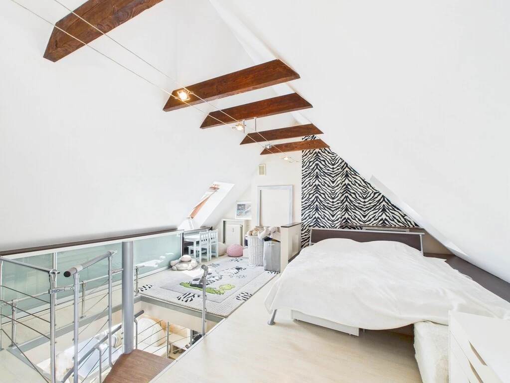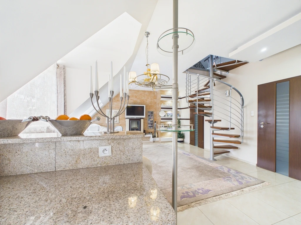 - Stilvolle Treppe mit Zugang zur Dachgeschoss-Ebene