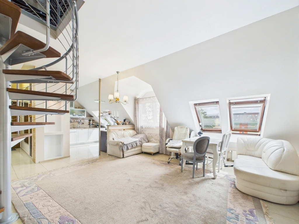 Die Nutzfläche von ca. 58,3 m² (laut Grundbuch) erstreckt sich über zwei Etagen und bietet eine gesamte Wohnfläche von ca. 78,2 m². Das Haus hat vier Etagen – die Wohnung befindet sich im obersten Stockwerk (ohne Aufzug).